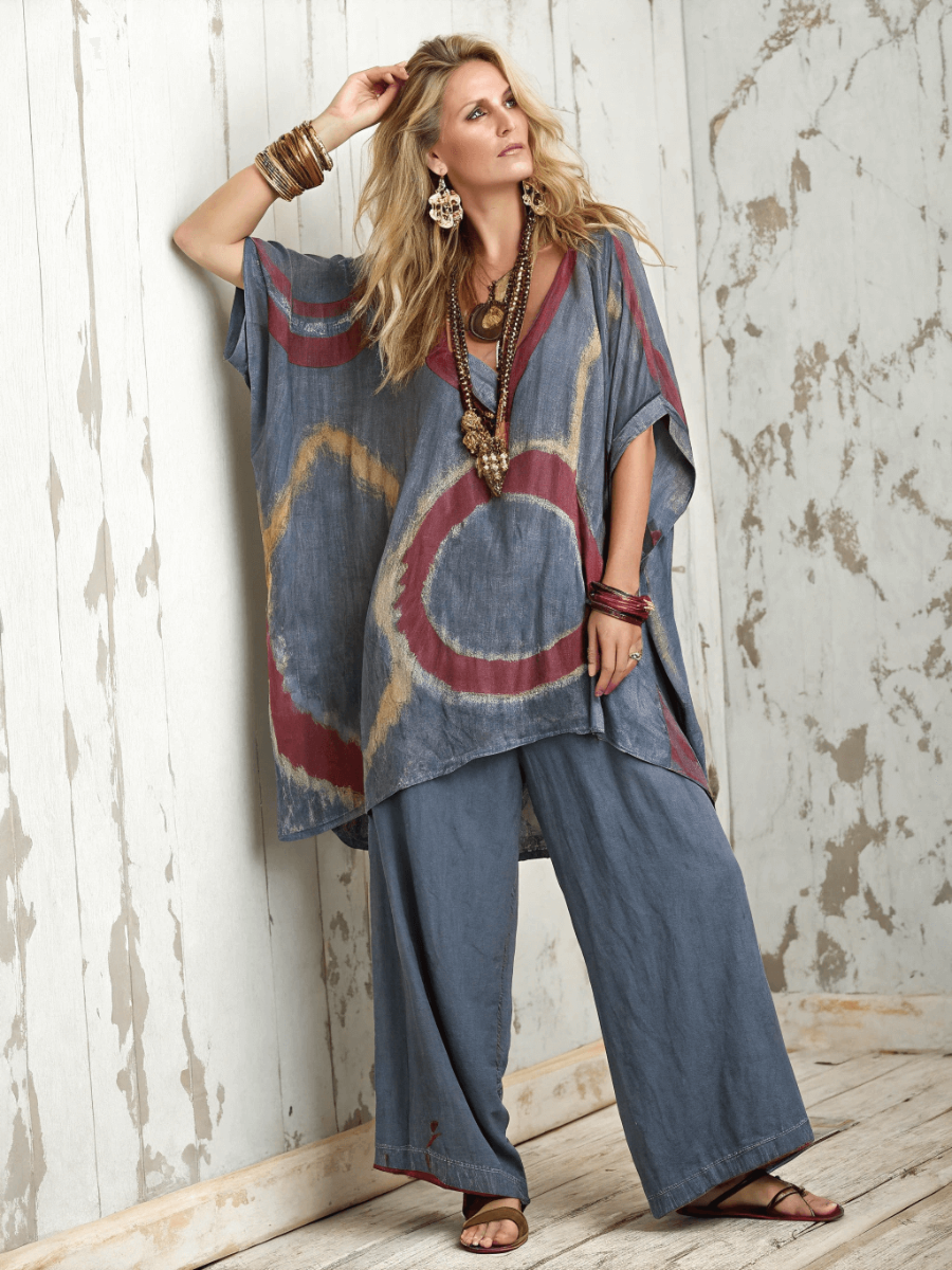 Style: The top is designed with a loose version, which shows a lazy and casual attitude when worn; the matching wide-leg pants have smooth lines, which are convenient for activities and can visually lengthen the leg proportions. The whole set of clothing is full of the relaxed atmosphere of leisure vacation, comfortable and fashionable.