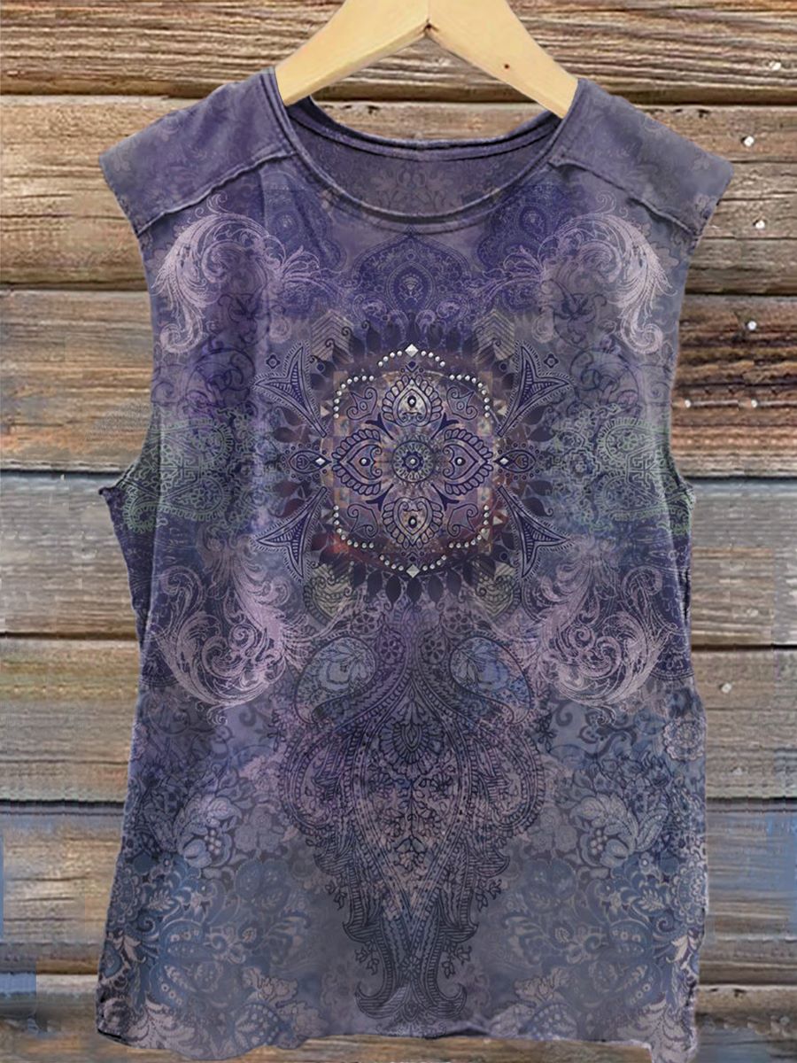 Ethnic Print 100% Cotton Casual Tank Top