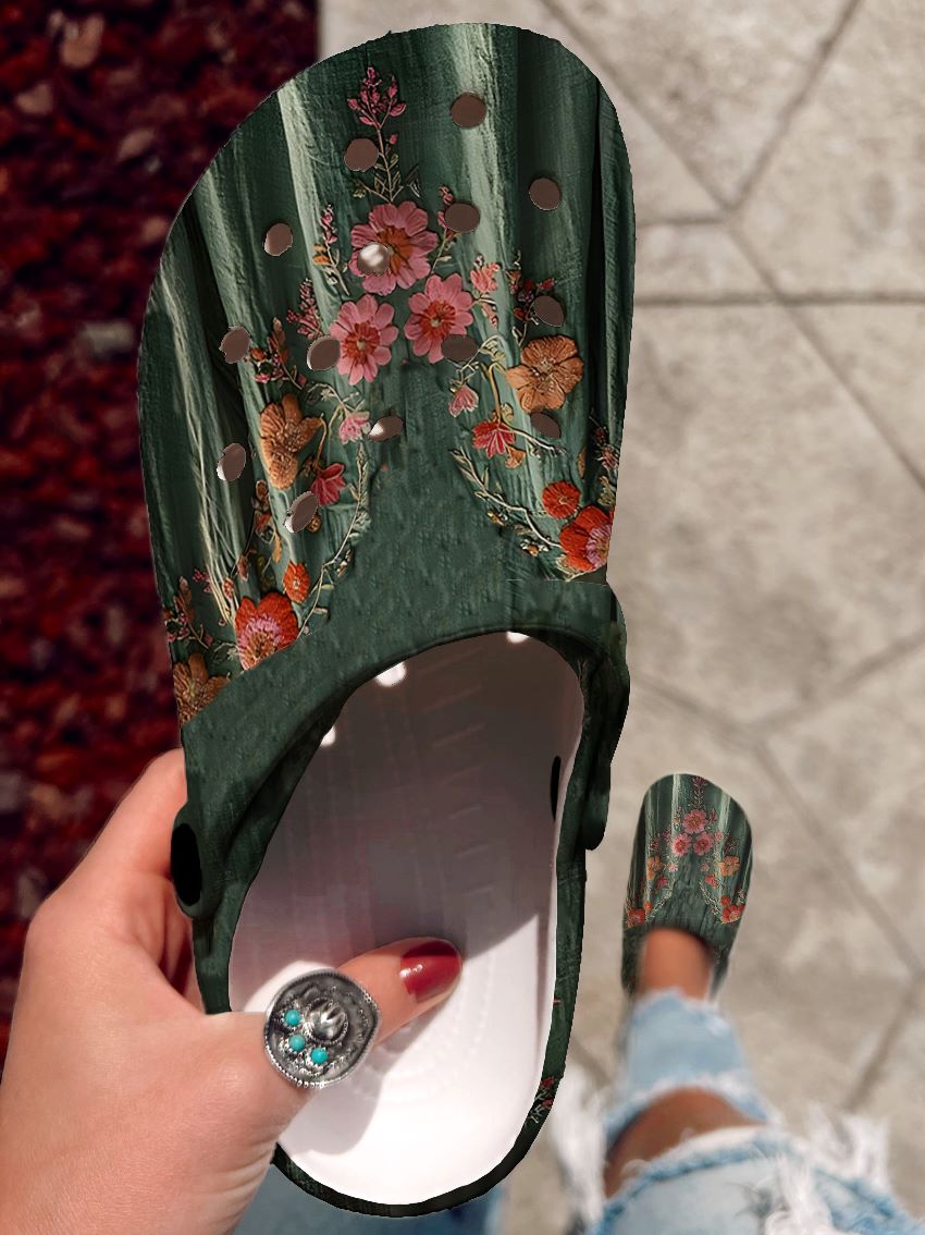 Floral Pattern Art Print Casual Hole Shoes