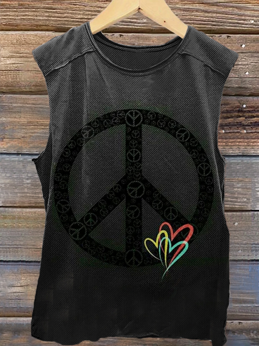 Hippie Love Peace Art Print 100% Cotton Casual Unisex Tank Top