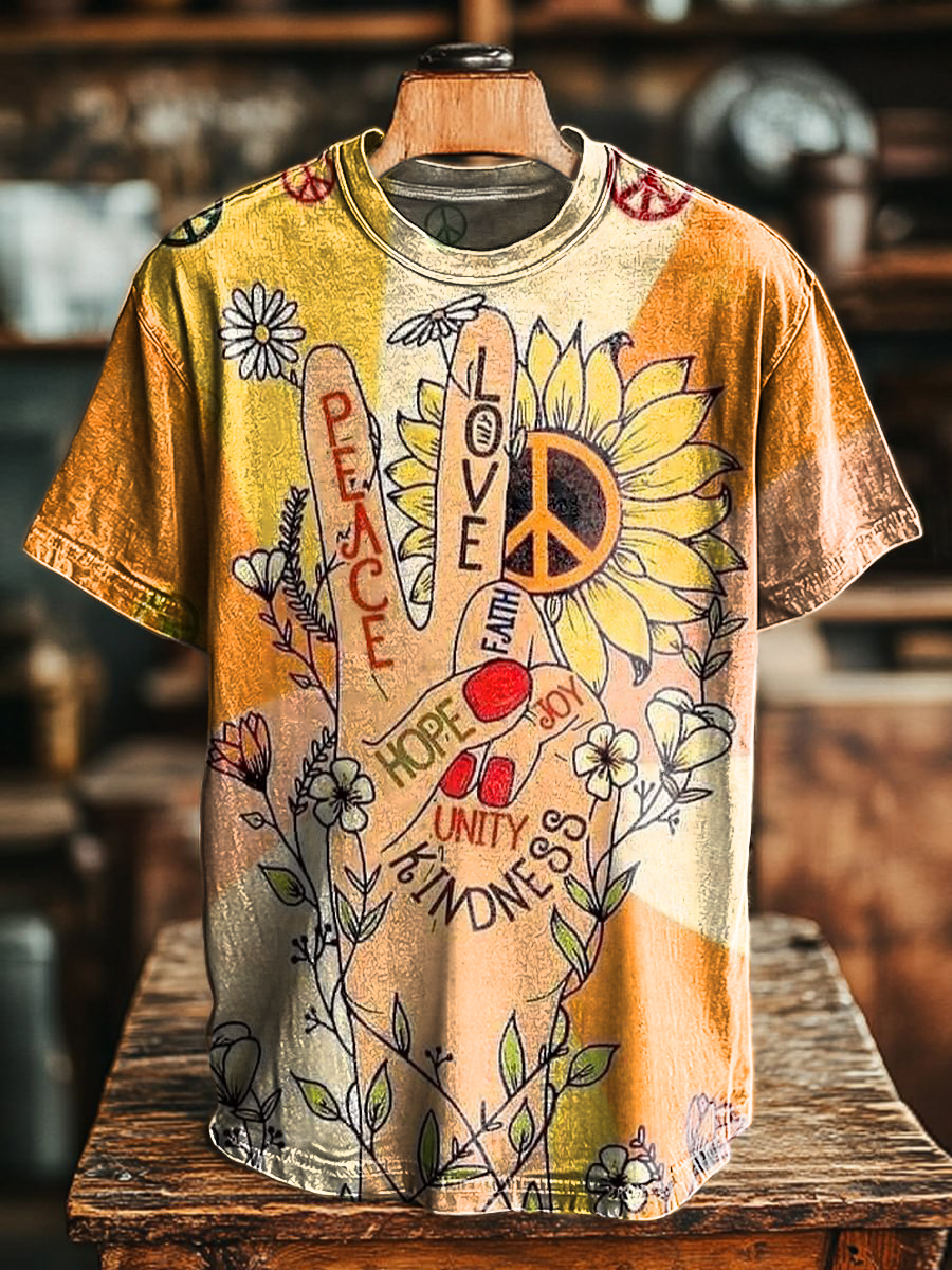 Hippie Peace Love Art Print Casaul Short Sleeve T-shirt
