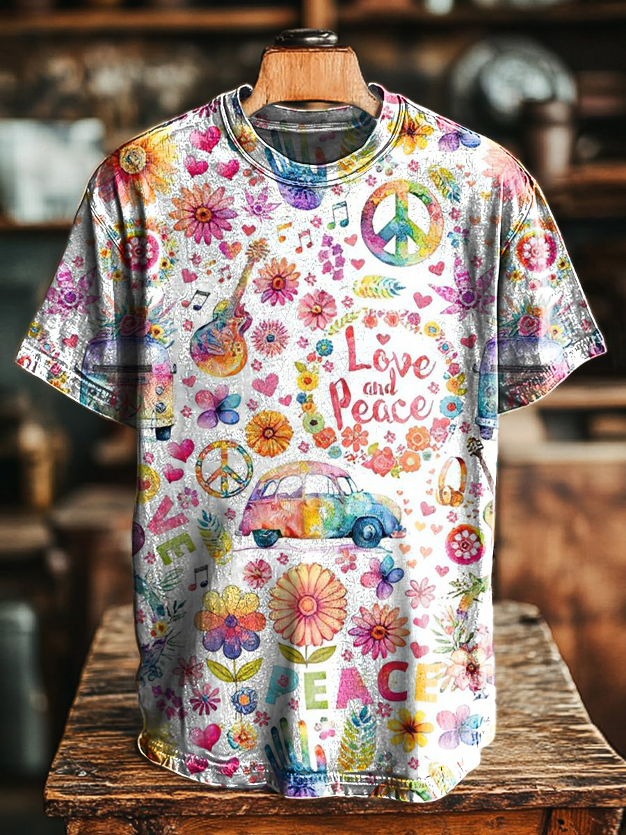 Hippie Peace Love Art Print Casaul Short Sleeve T-shirt