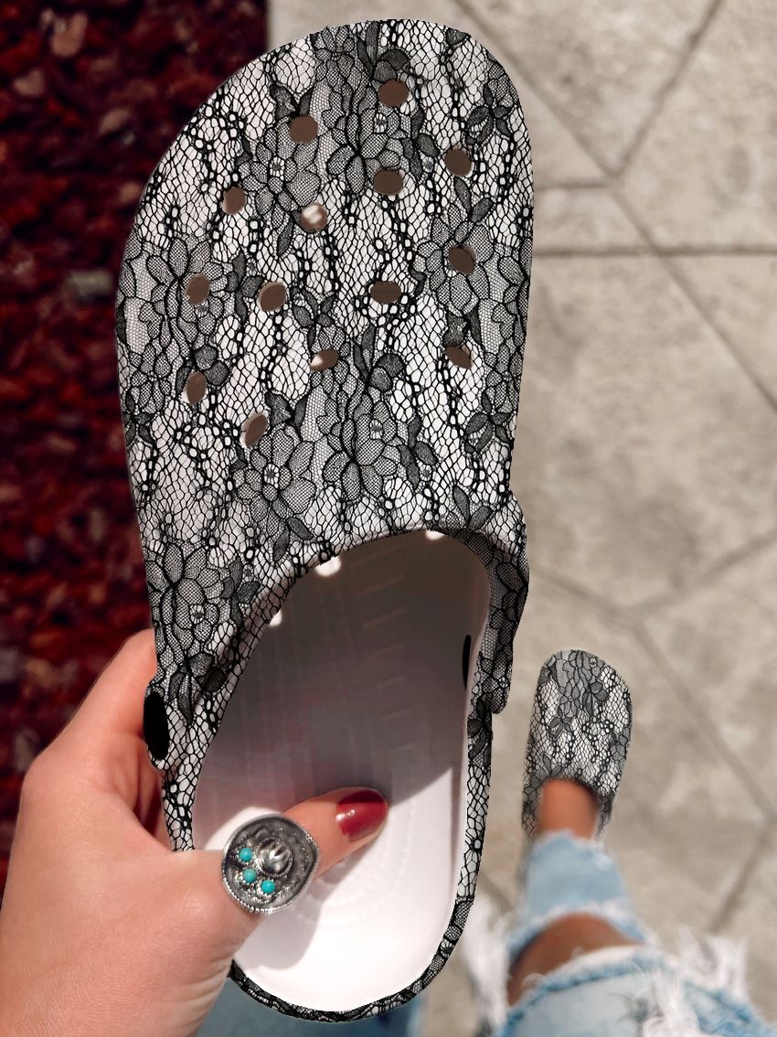 Lace Textured Pattern Art Print Casual Hole Shoes