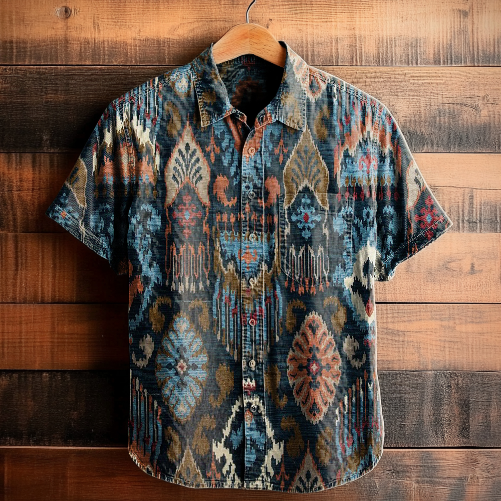 Men's Art Painting Ethnic Retro Print Lapel Shirt