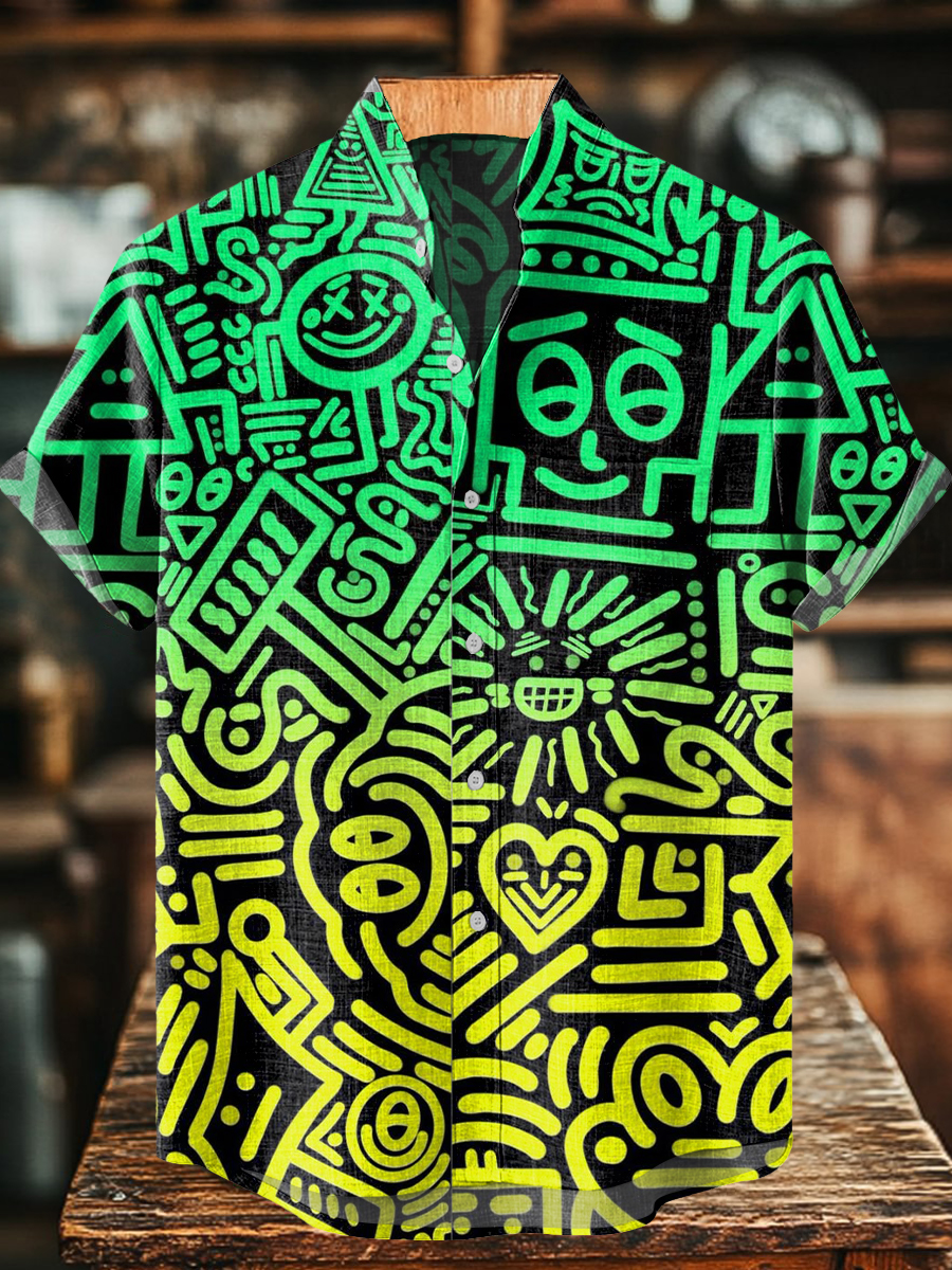 Men's Art Painting Ethnic Style Gradient Color Print Stand Collar Shirt