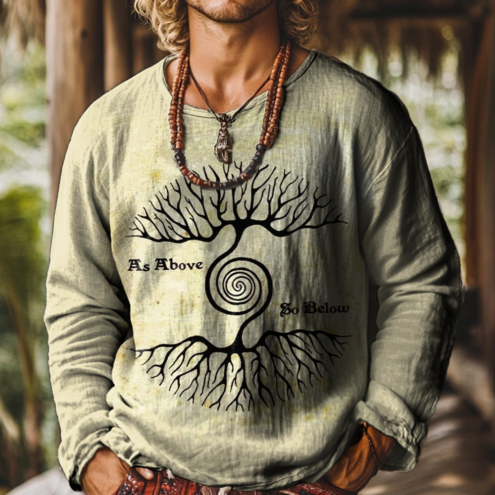 Men's Art Painting Ethnic Style Retro Pattern Printed Round Neck Long Sleeve