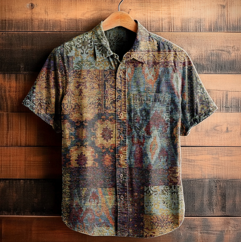 Men's Art Painting Ethnic Style Retro Print Short Sleeve Lapel Shirt