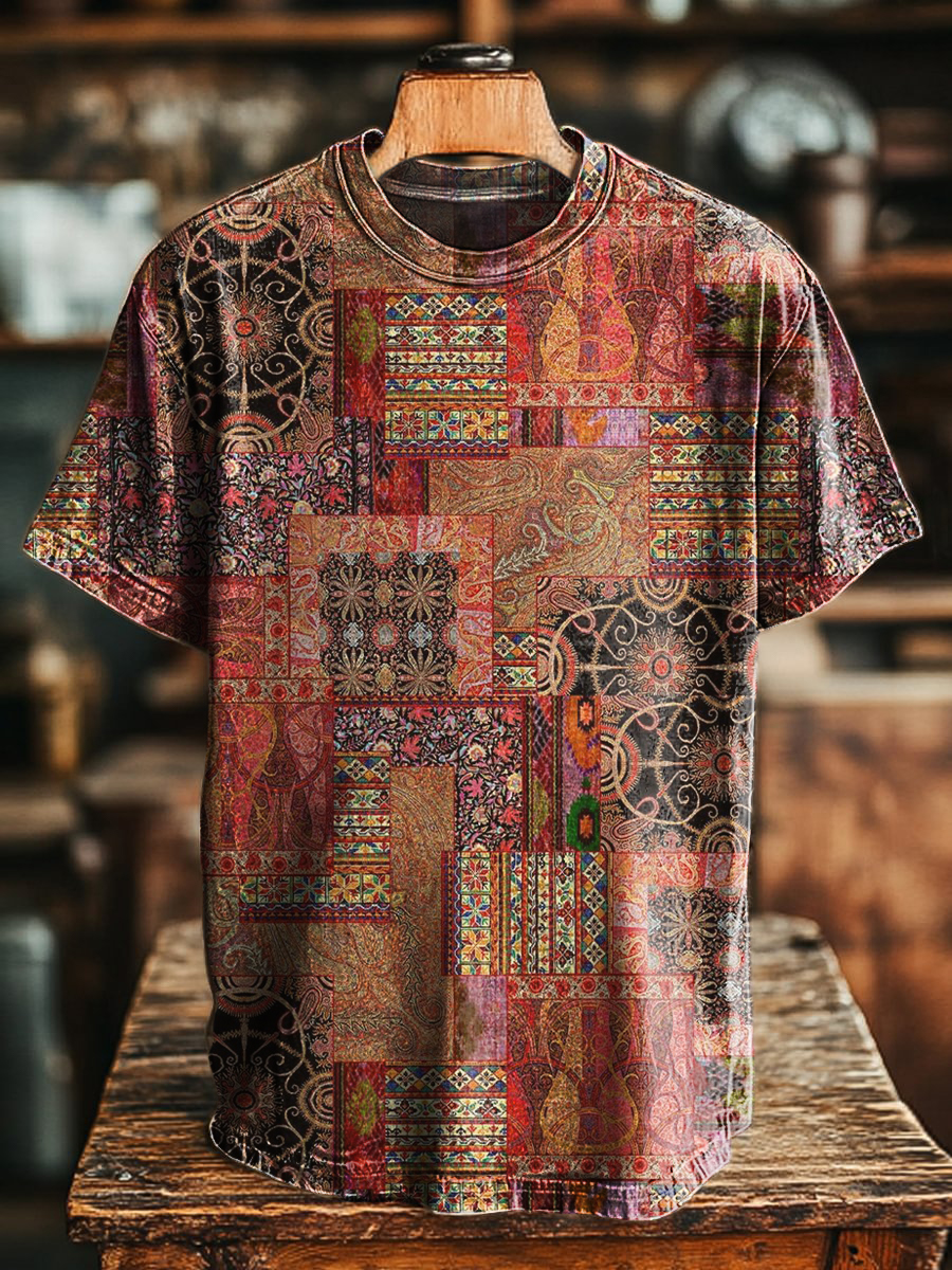 Men's Art Painting Ethnic Style Retro Print Slim Short Sleeve