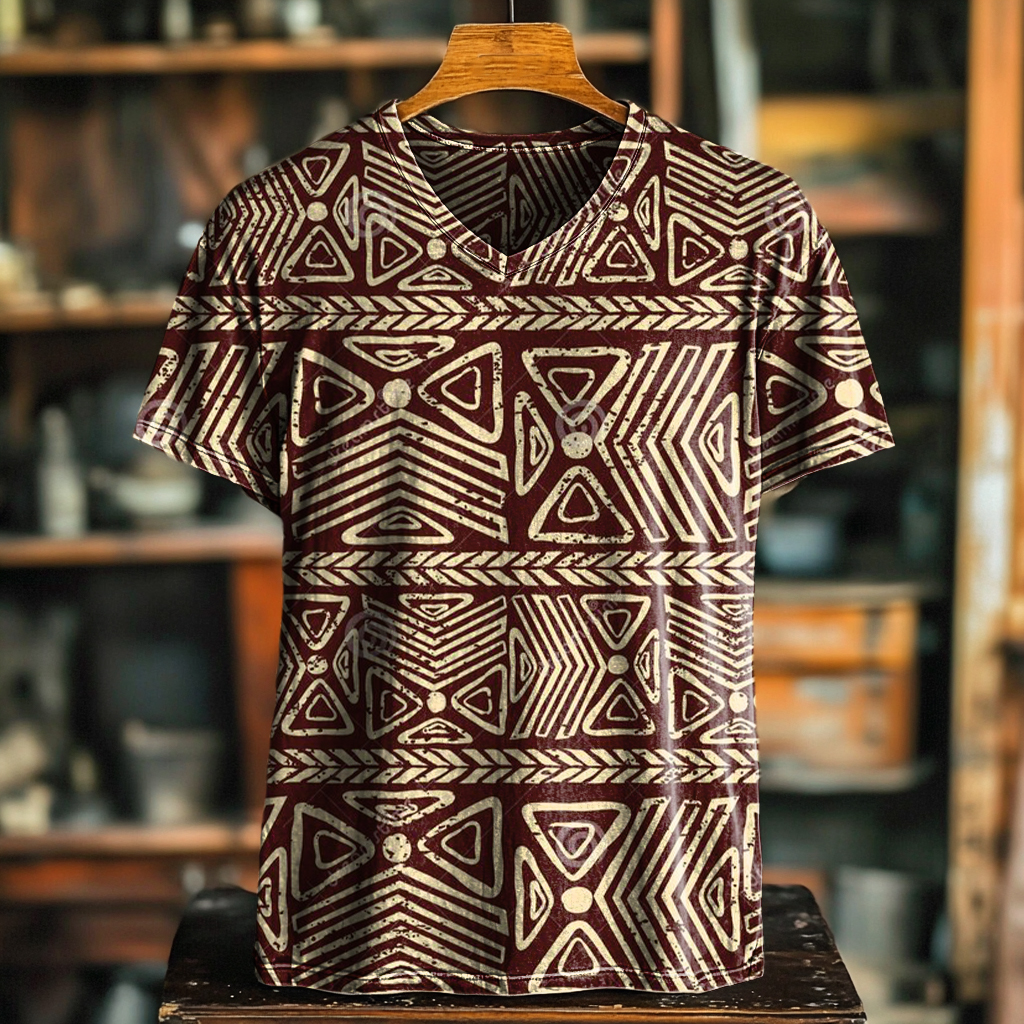Men's Art Painting Ethnic Style Retro Print V-Neck Short Sleeve