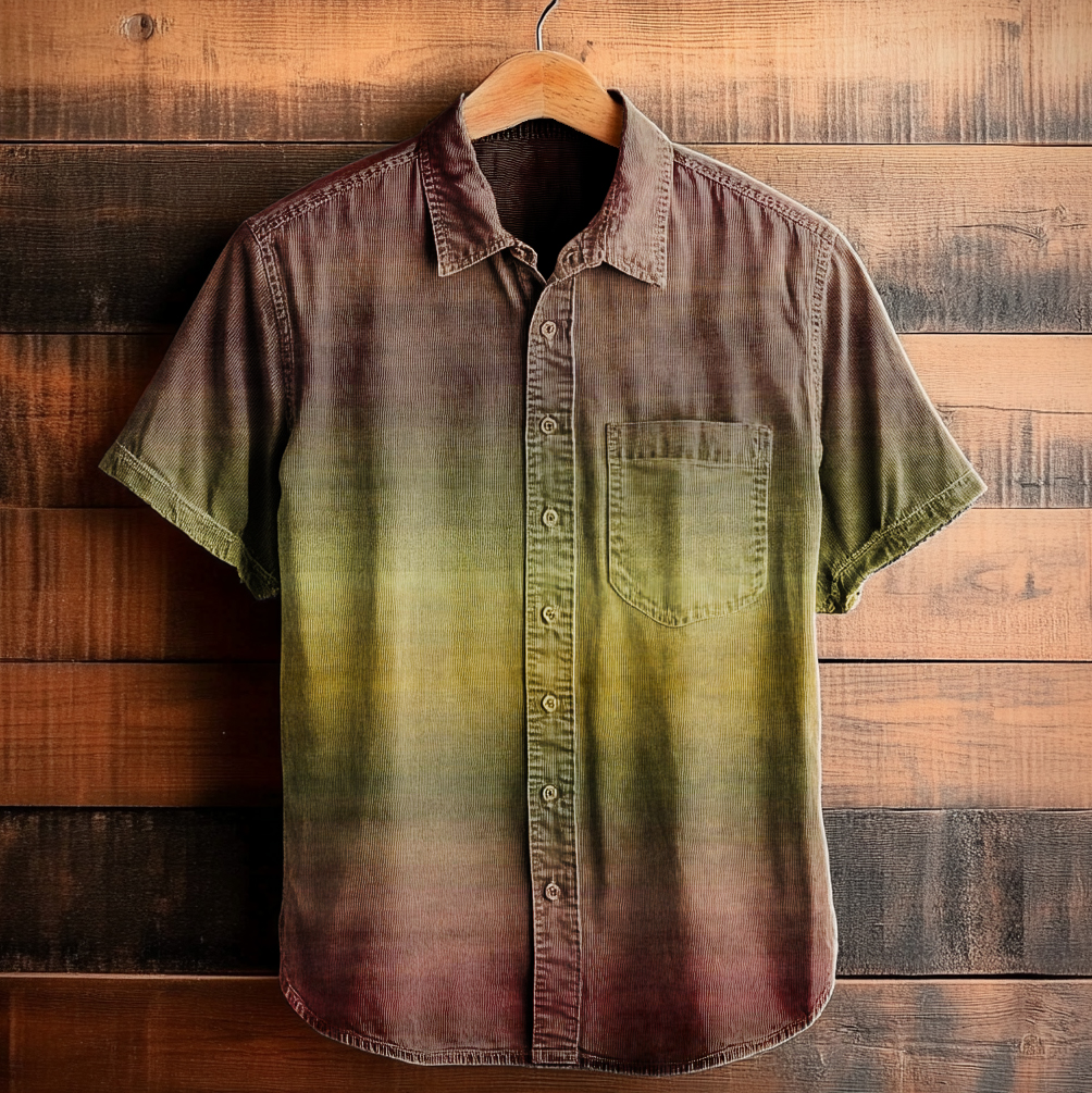 Men's Art Painting Gradient Print Short Sleeve Lapel Shirt