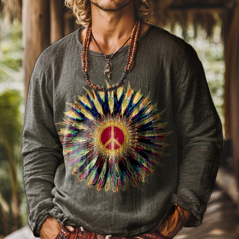 Men's Art Painting Hippie Ethnic Style Printed Round Neck Long Sleeve