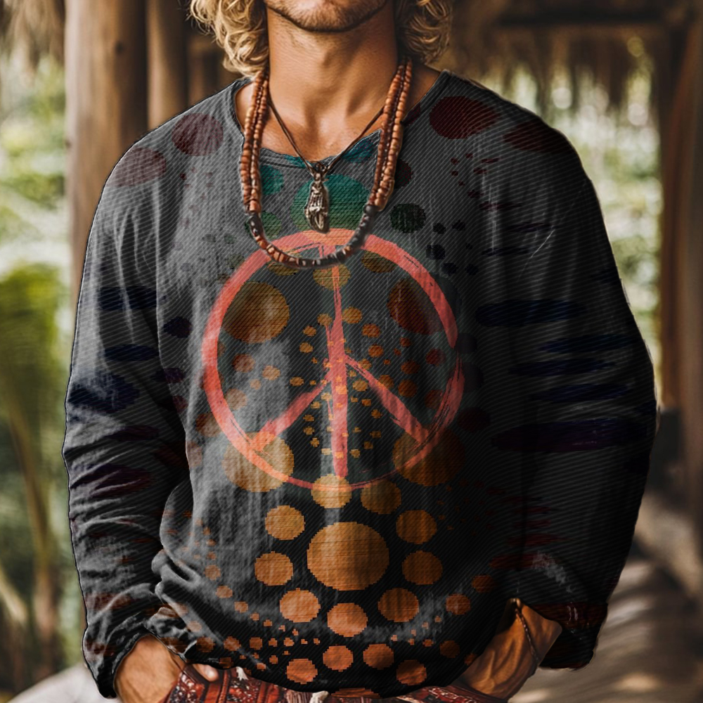 Men's Art Painting Hippie Gradient Print Round Neck Long Sleeve