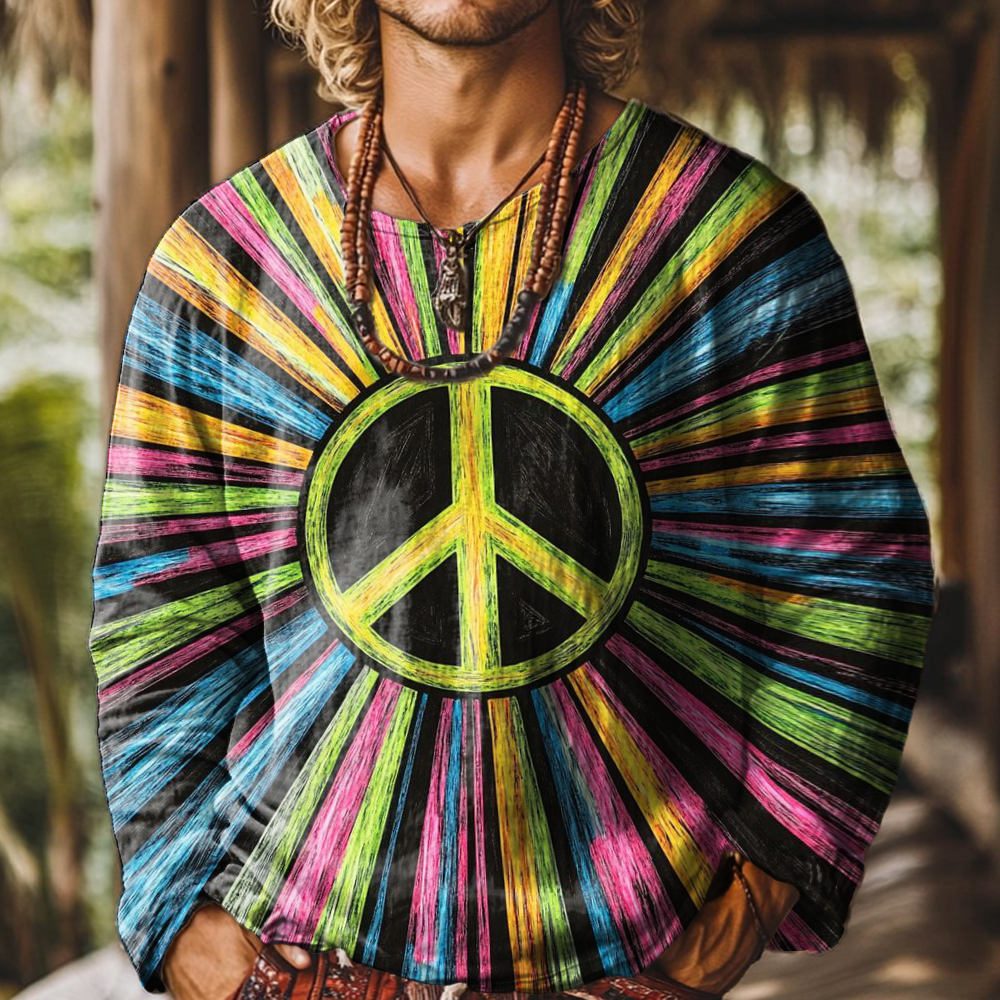 Men's Art Painting Hippie Rainbow Visual Impact Print Round Neck Long Sleeve