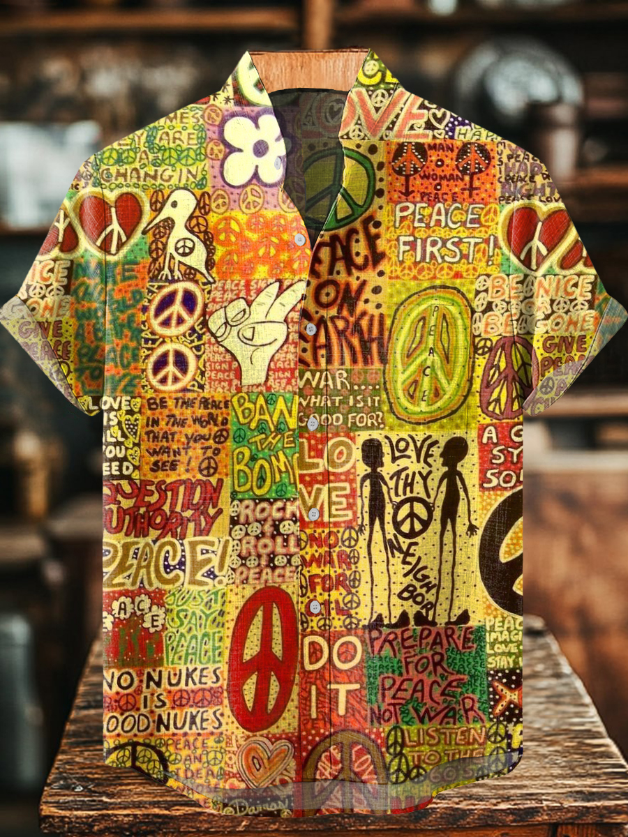 Men's Art Painting Hippie Retro Print Stand Collar Shirt