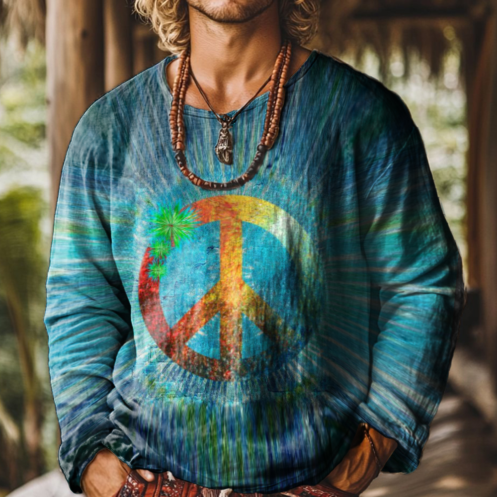 Men's Art Painting Hippie Seaside Vacation Coconut Tree Print Round Neck Long Sleeve