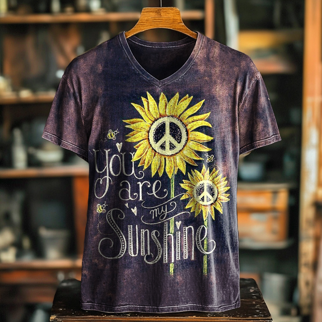 Men's Art Painting Hippie Sunflower Retro Print V-Neck Short Sleeve
