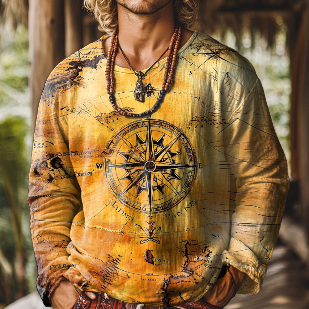 Men's Art Painting Nautical Compass Vintage Print Round Neck Long Sleeve