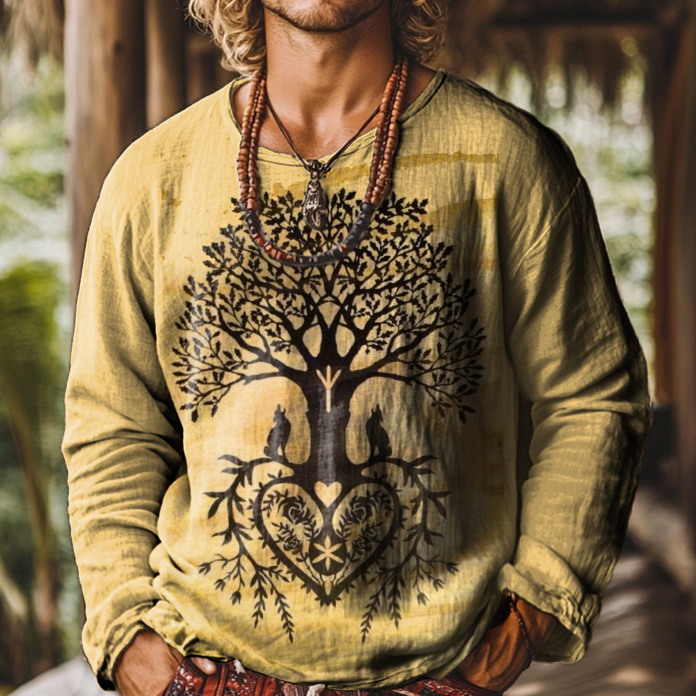 Men's Art Painting Tree of Life Vintage Print Round Neck Long Sleeve