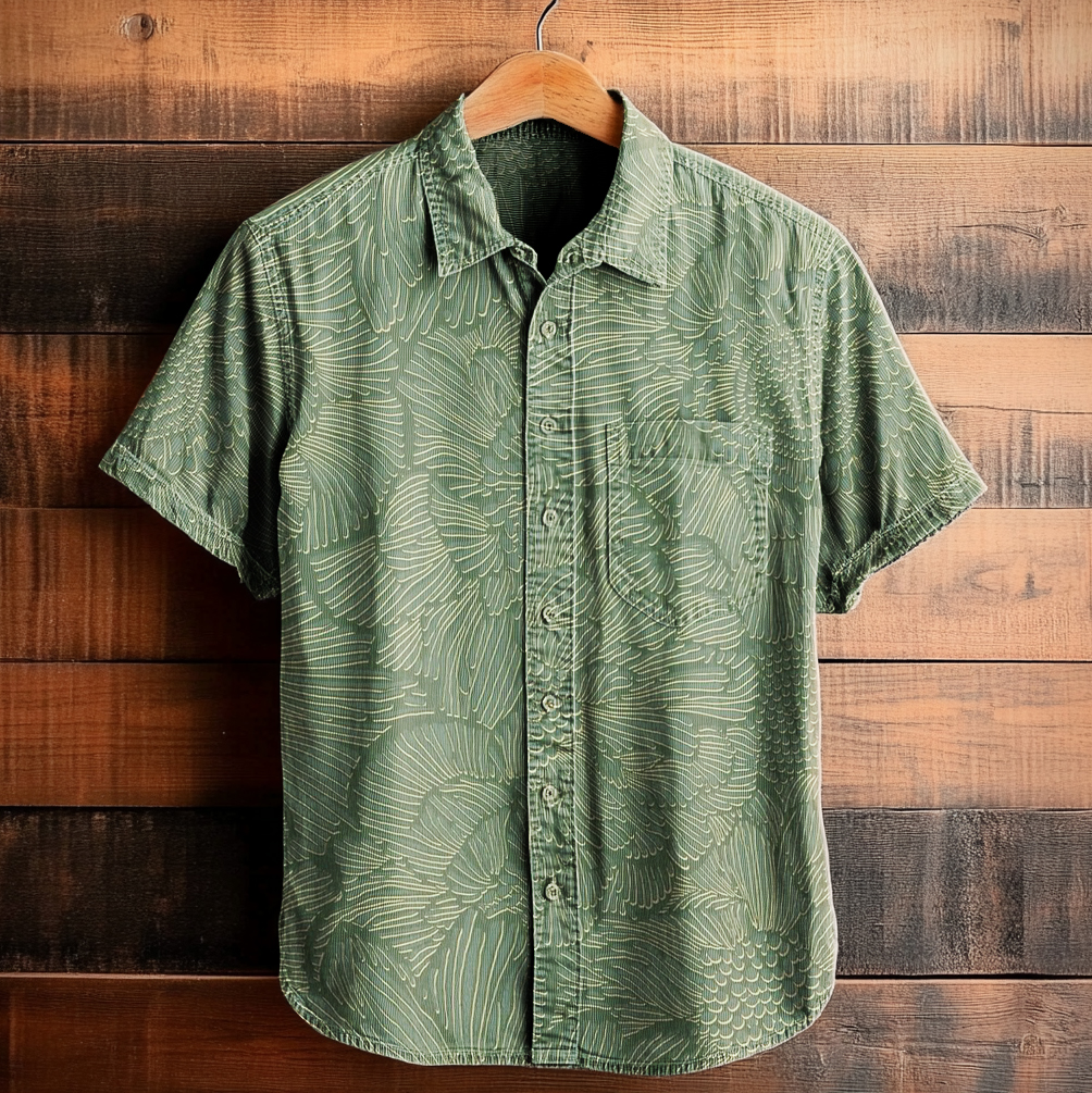 Men's Artistic Floral Line Print Lapel Shirt