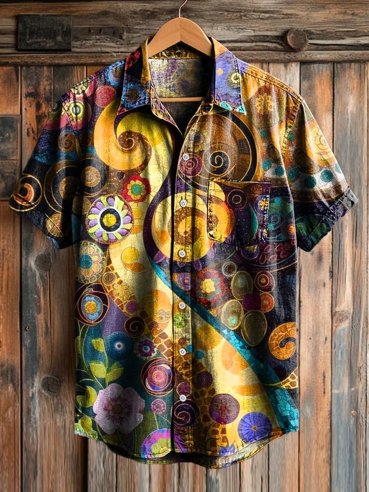 Men's Retro Colorful Abstract Art Print Short Sleeve Pocket Shirt