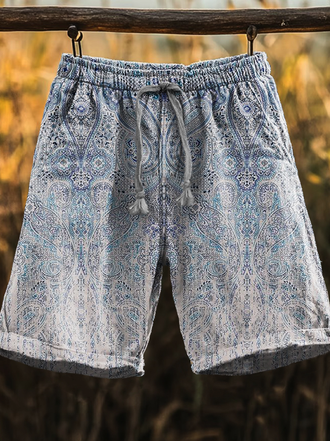 Men's Retro Ethnic Gradient Paisley Print Comfy 100% Cotton Shorts
