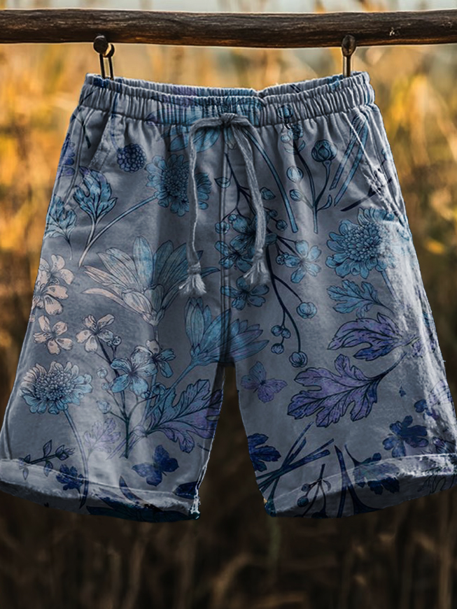 Men's Vintage Ethnic Floral Art Print Comfy 100% Cotton Shorts