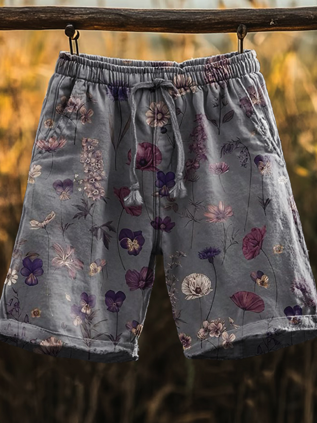 Men's Vintage Floral Print Comfy 100% Cotton Shorts
