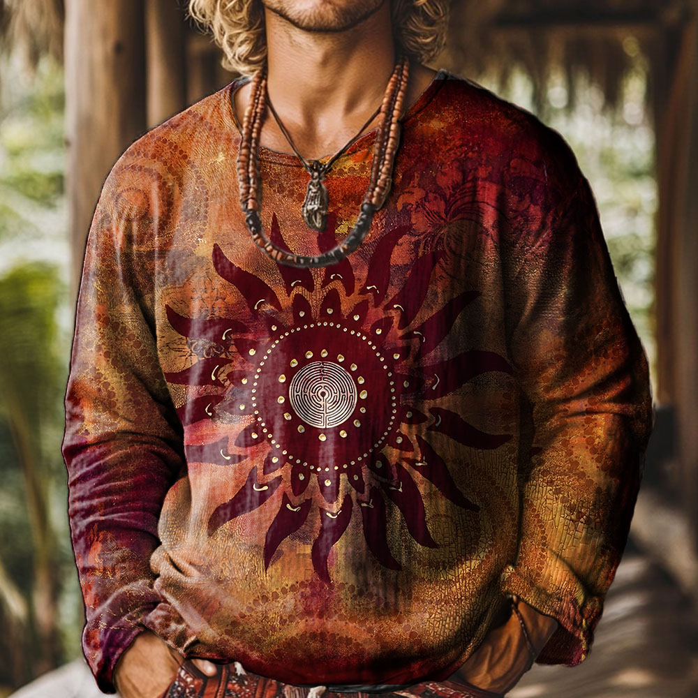 Retro Sun Abstrac Ethnic patterns Vintage Print Casual 100% Cotton Shirt