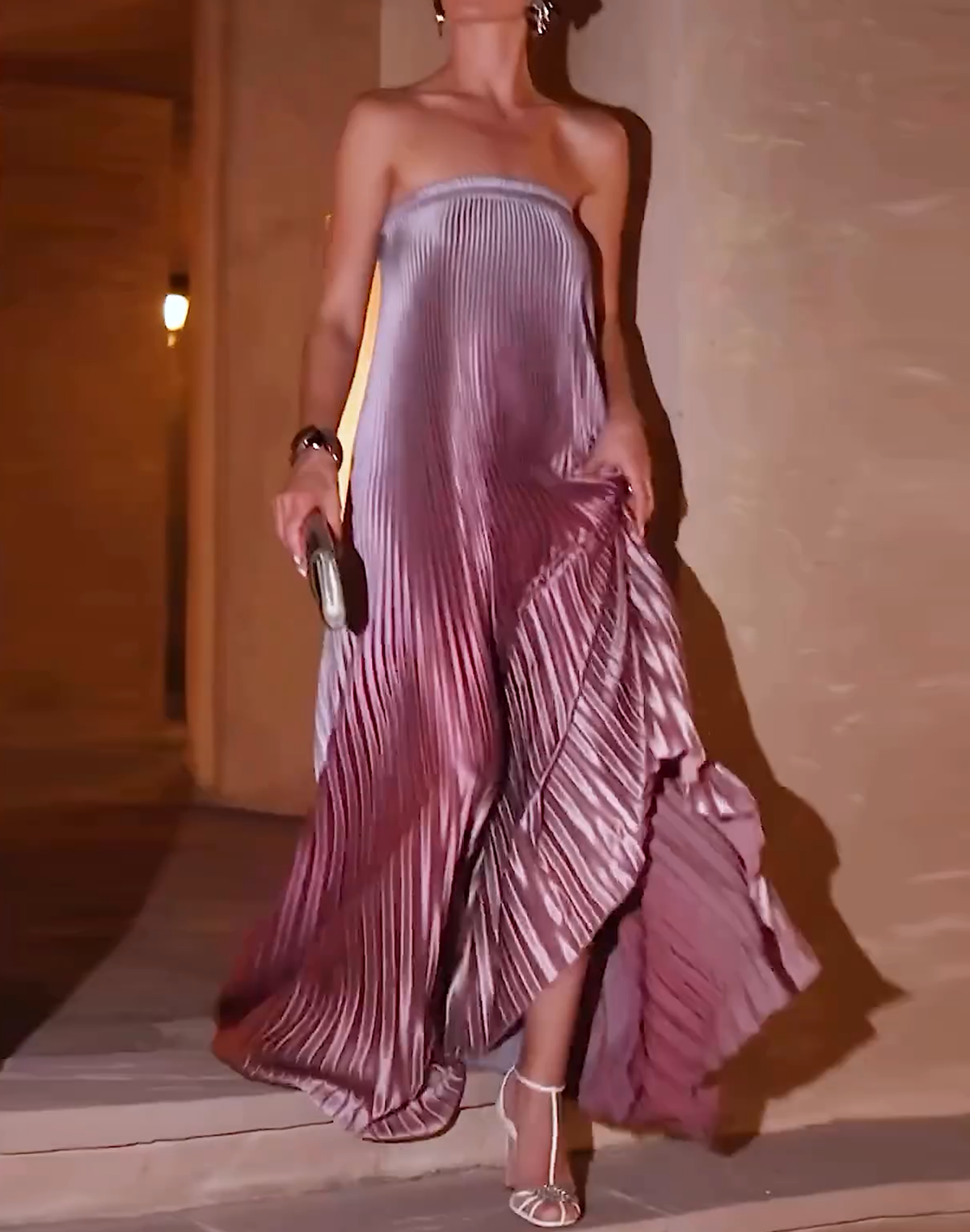 Strapless Pleated Elegant Maxi Dress