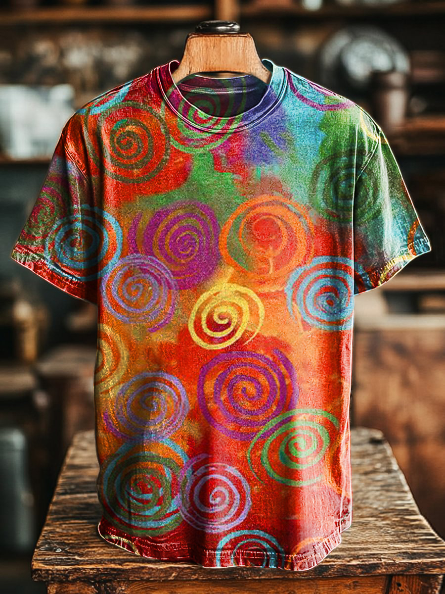 Unisex Art Painting Colorful Tie-Dye Fun Printed Round Neck Short Sleeve