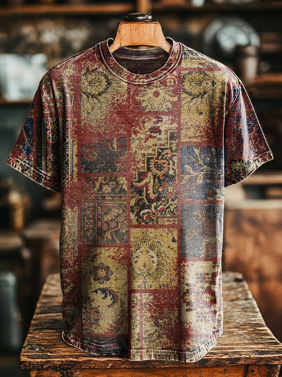 Unisex Art Painting Ethnic Floral Vintage Printed Round Neck T-Shirt