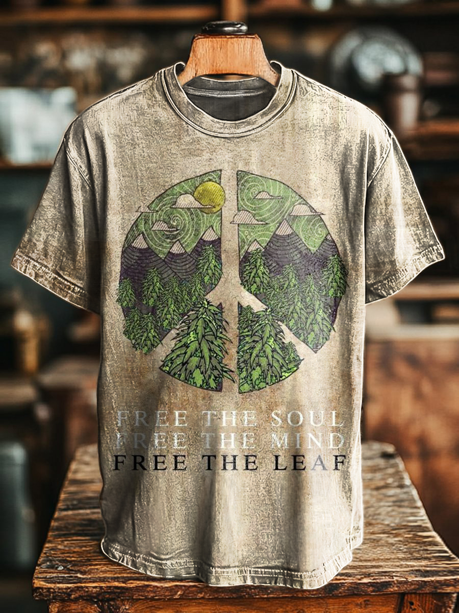 Unisex Art Painting Hippie Leaf Letters Graffiti Print Short Sleeve T-Shirt