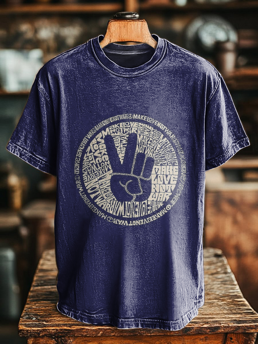 Unisex Art Painting Hippie Letters Graffiti Print Short Sleeve T-Shirt