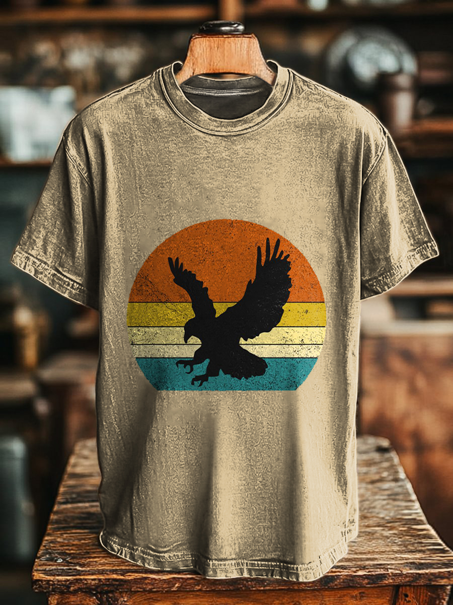 Unisex Art Painting Sunset Eagle Fun Printed Round Neck T-Shirt