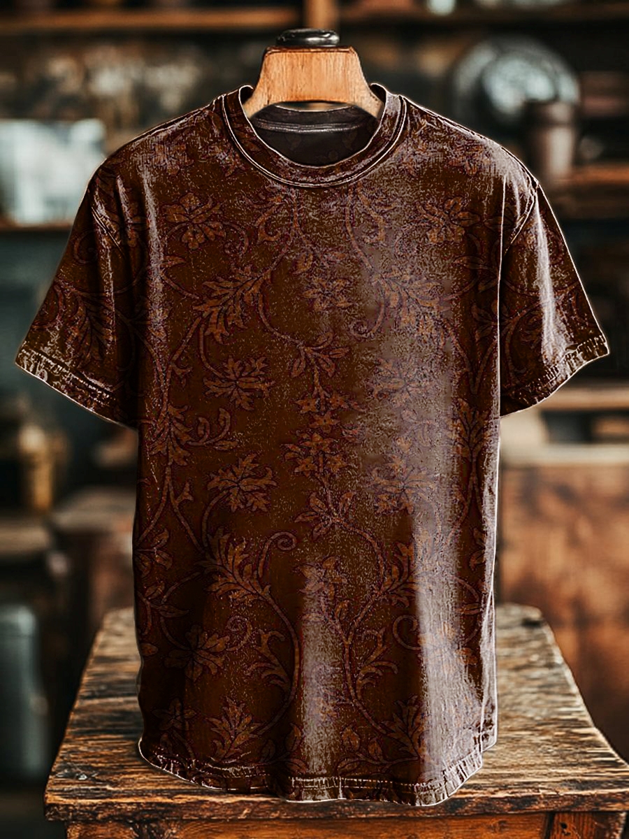 Unisex Retro Ethnic Flowers Print Casual Loose Short Sleeve T-Shirt