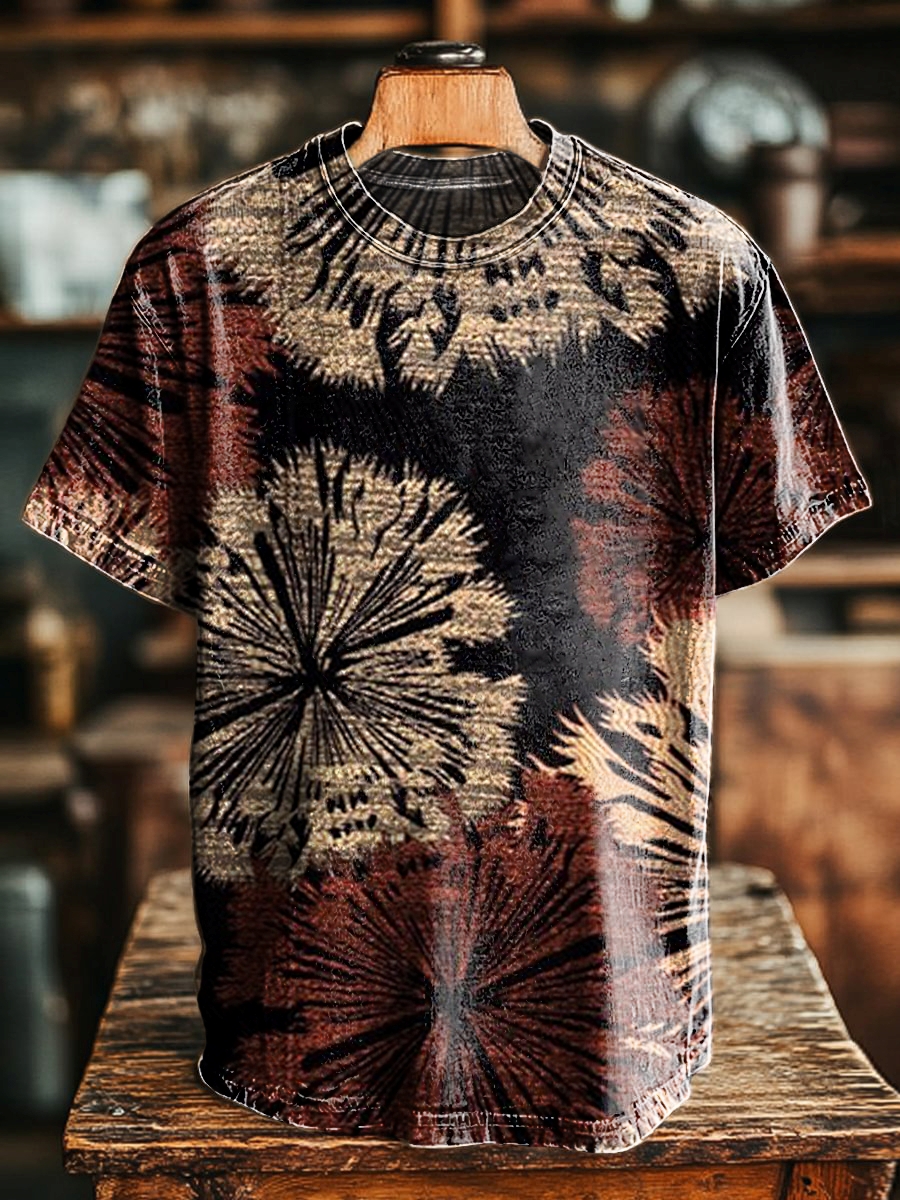Unisex Retro Ethnic Tie-dye Art Print Casual Loose Short Sleeve T-Shirt