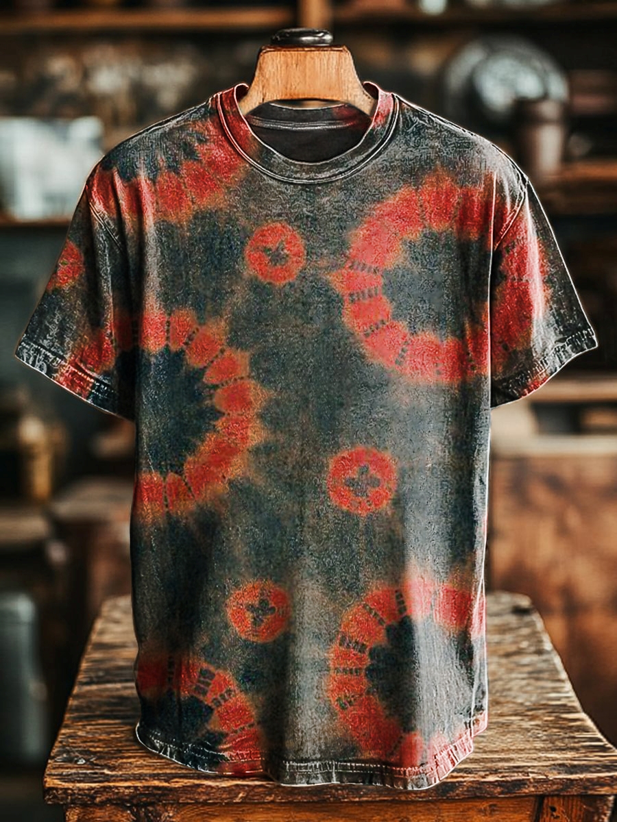 Unisex Retro Ethnic Tie-dye Art Print Casual Loose Short Sleeve T-Shirt