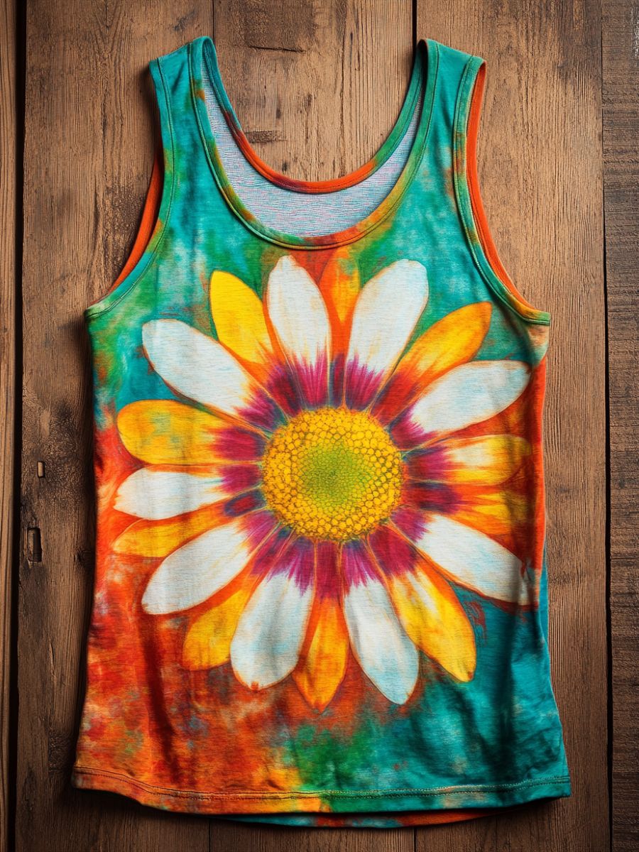 Unisex Tie Dye Daisy Art Graphic Print Crew Neck Cotton Tank Top