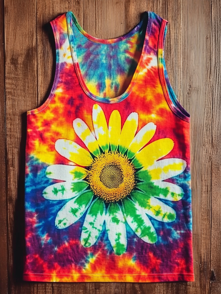Unisex Tie Dye Daisy Graphic Print Crew Neck Cotton Tank Top
