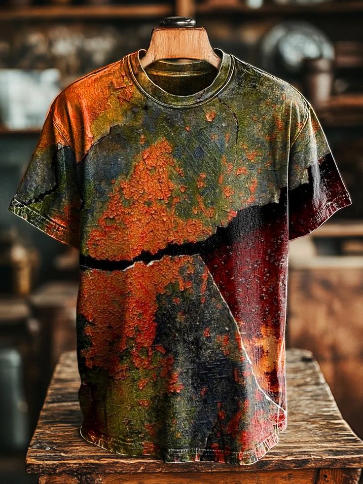Unisex Vintage Abstract Crackle Print Casual Loose T-Shirt