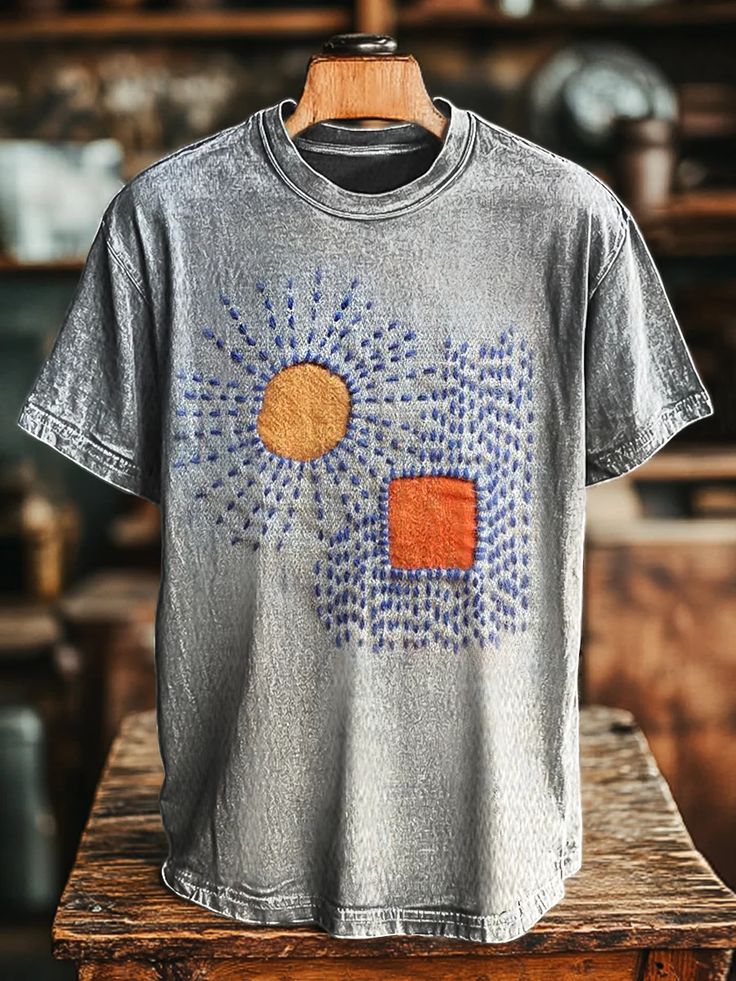 Unisex Vintage Abstract Patch Print Casual Loose T-Shirt