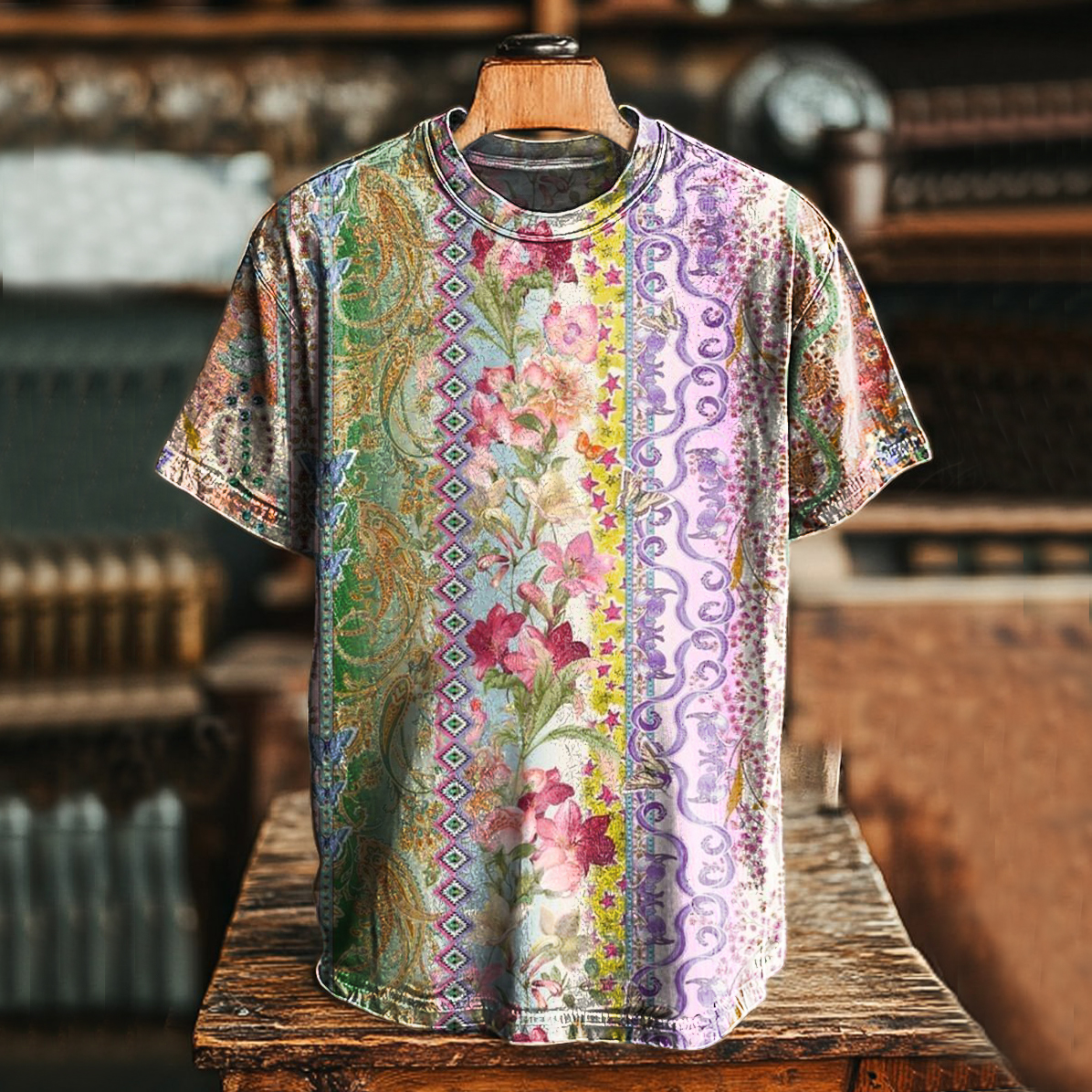 Unisex Vintage Floral Art Print Casaul Short Sleeve T-Shirt
