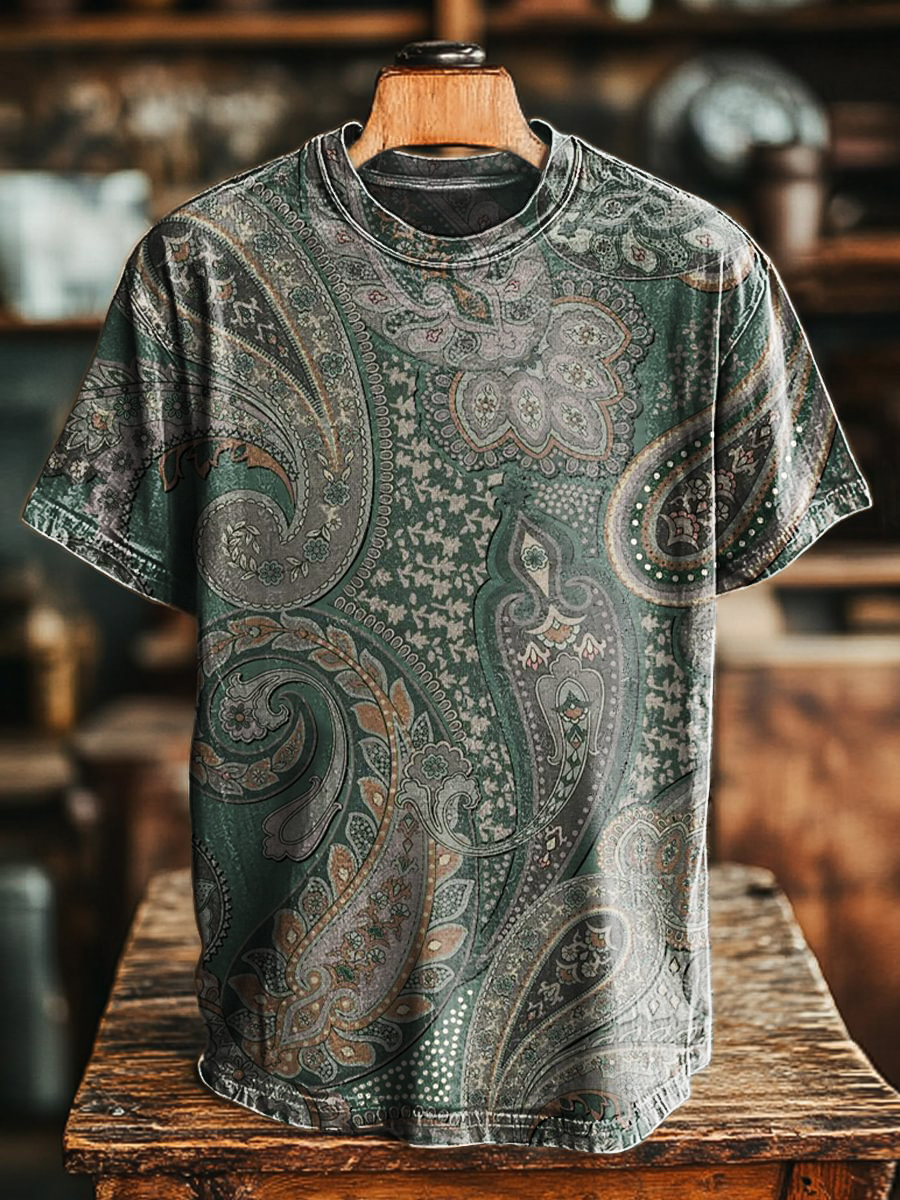 Unisex Vintage Paisley Floral Art Print Casual Short Sleeve T-shirt