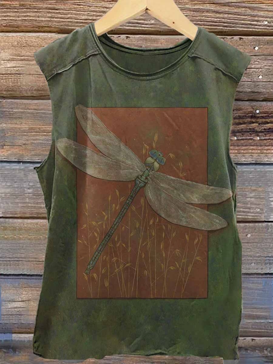 Vintage Dragonfly Art Print 100% Cotton Casual Unisex Tank Top