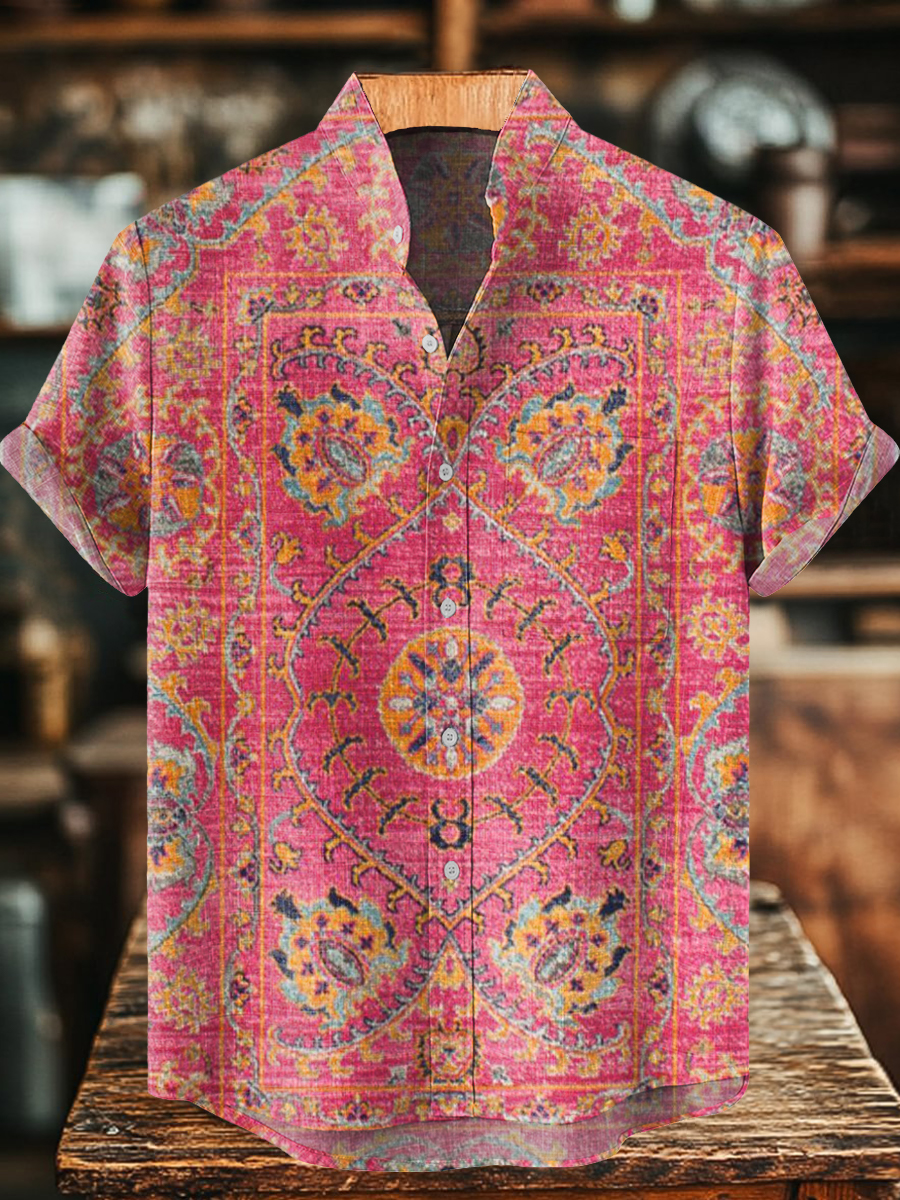 Vintage Ethnic Floral Art Print Casual 100% Cotton Shirt