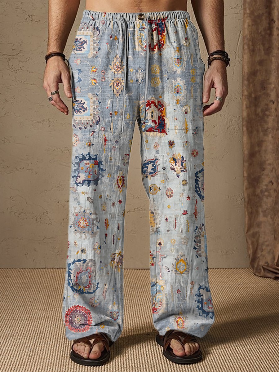 Vintage Floral Art Print Men's Comfy 100% Cotton Pants
