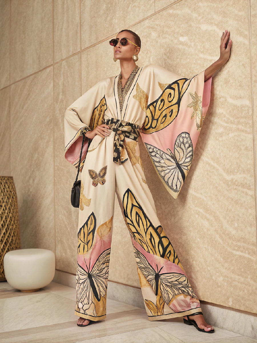 Pattern elements: Butterfly prints are the main elements. The butterflies are of various shapes and lifelike, as if dancing in the flowers, adding a romantic and agile atmosphere to the jumpsuit. The color matching of the prints is rich and coordinated. There may be a variety of soft tones such as pink, purple, and yellow, creating a fresh and sweet atmosphere. There may also be black, white and colorful butterflies, showing a fashionable and individual style.Material fabric: Made of polyester fabric, it has the characteristics of being crisp and wrinkle-resistant. It is very convenient to take care of. Even after long-term activities, it can maintain a good version for daily wear. At the same time, polyester fabric also has certain wear resistance and corrosion resistance, can withstand the test of daily wear and washing, and has a long service life.