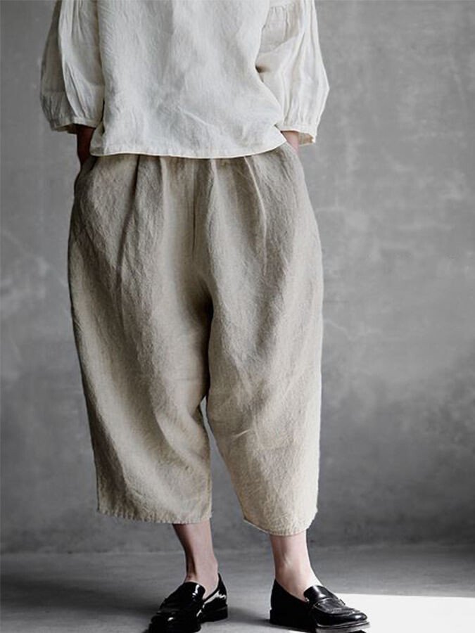 Women's Cotton Linen Comfortable Casual Simple Loose Ninth Wide Leg Pants