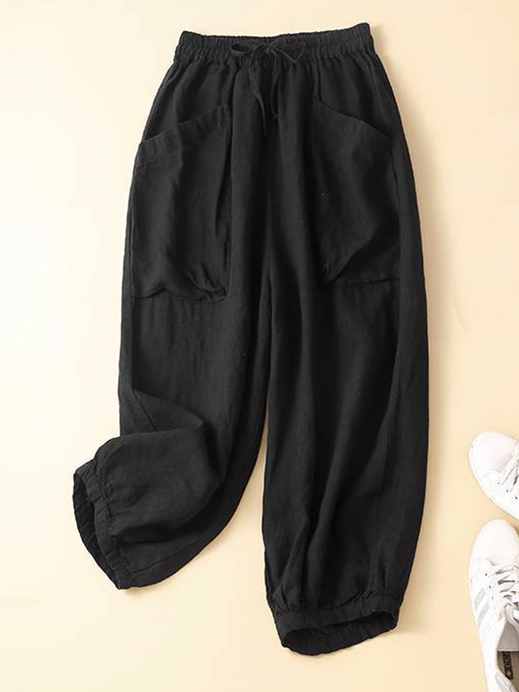 Women's Linen Blend Elastic Waist Casual Pants