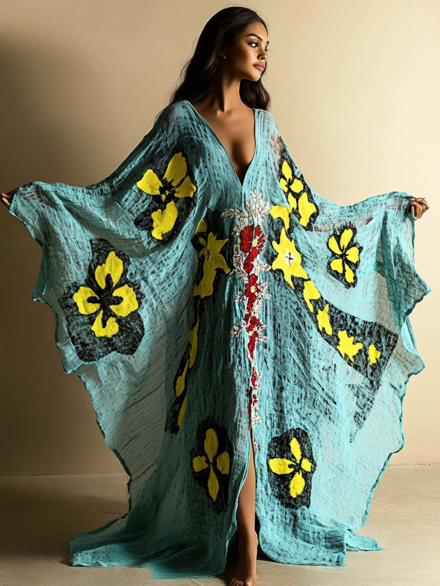 High-quality fabrics: This women's there are a few yellow flowers on the blue background robe is made from a breathable Gauze linen blend that is soft and textured, lightweight and breathable, so you will feel comfortable all day long. Its natural fibres provide a loose drape for a casual yet sophisticated look.
